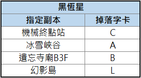 活動期間內,通關指定副本將掉落該副本對應的「活動字卡」,