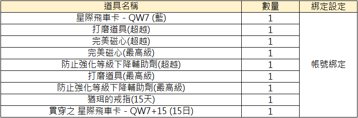 3. 獎勵獲取的道具可能有等級、綁定、時效等限制,實際道具設定以遊戲中獲取為準。