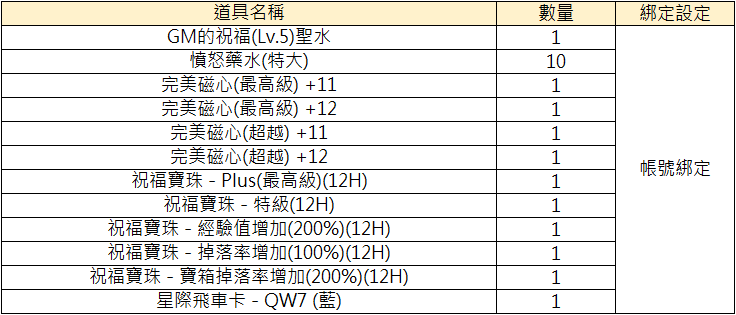 2. 『猶珥的兌換票_1(30日)』、『酷暑補給箱』為帳號綁定道具。