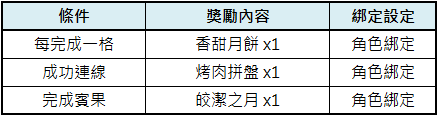 只要通關賓果盤上的指定任務,即可獲得各種中秋好物。