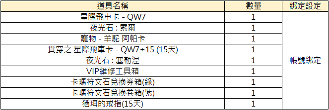 3. 獎勵獲取的道具可能有等級、綁定、時效等限制,實際道具設定以遊戲中獲取為準。