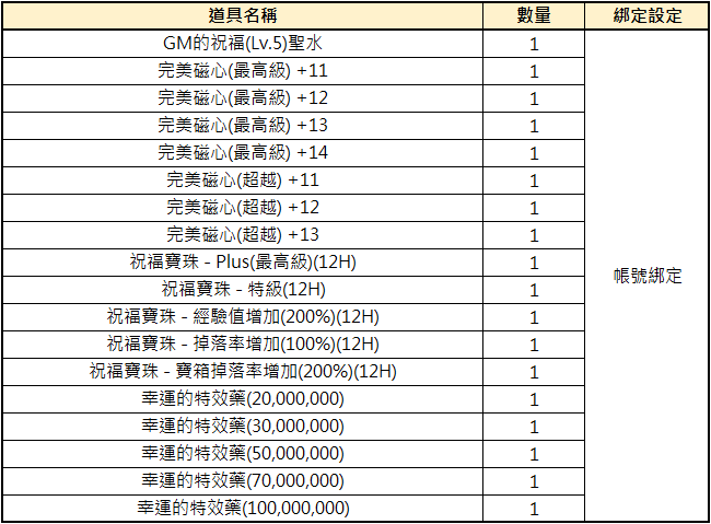 4. 本活動所贈送之道具均不得要求轉換、轉讓,或更換成其他遊戲道具、貨幣。
