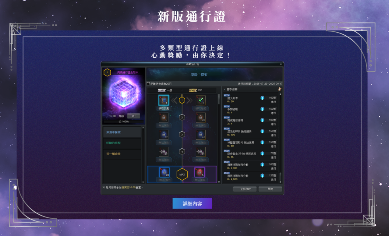 ※「新版活動通行證」將暫不開放,我們預計於往後更新推出,並帶來更完整的體驗,感謝大家的耐心等待。