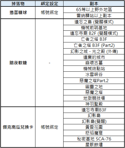 擊殺指定副本內怪物隨機掉落「暗夜軟糖」或「傑克南瓜兌換卡」。