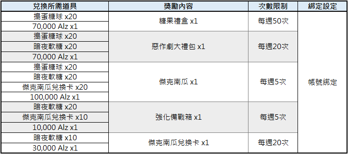 2. 部分獎勵設有每周或每日帳號兌換次數限制,每周兌換限制將於週二中午12:00重置次數。