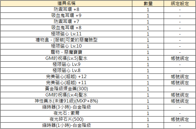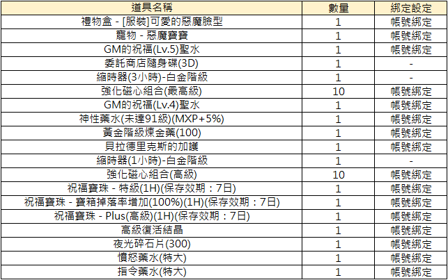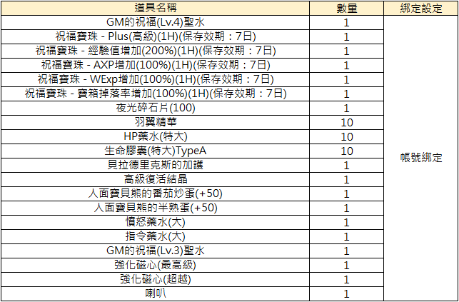 3. 獎勵獲取的道具可能有等級、綁定、時效等限制,實際道具設定以遊戲中獲取為準。