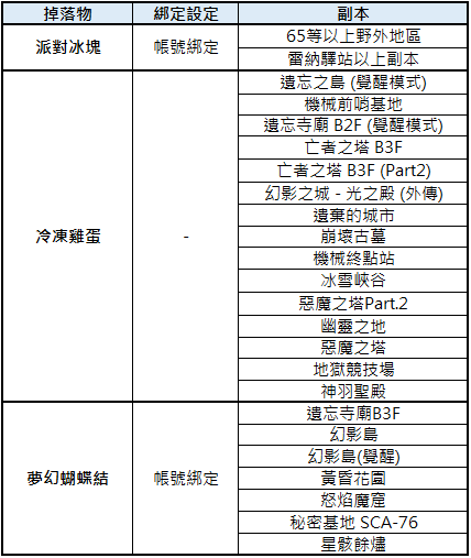 擊殺指定副本內怪物隨機掉落「冷凍雞蛋」或「夢幻蝴蝶結」。