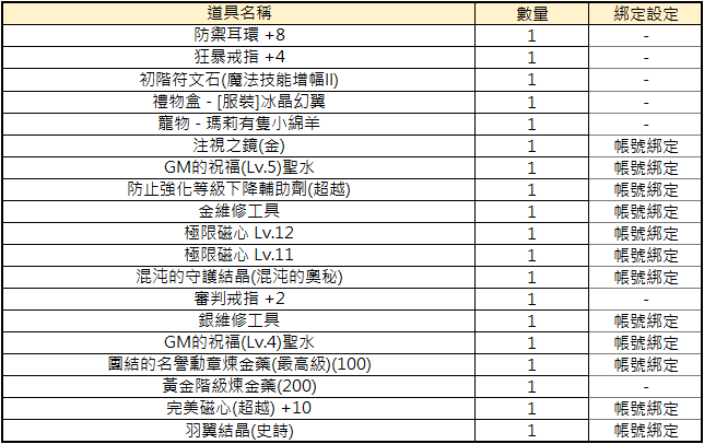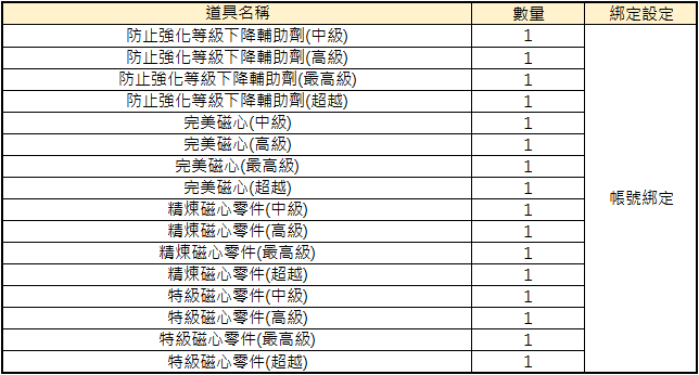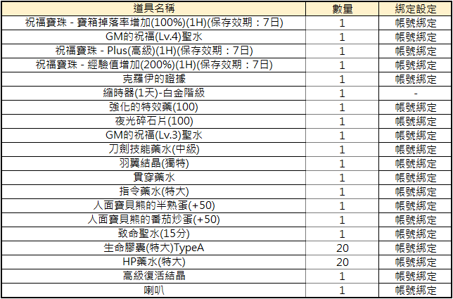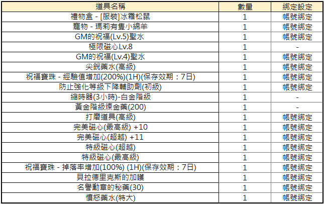3. 獎勵獲取的道具可能有等級、綁定、時效等限制,實際道具設定以遊戲中獲取為準。