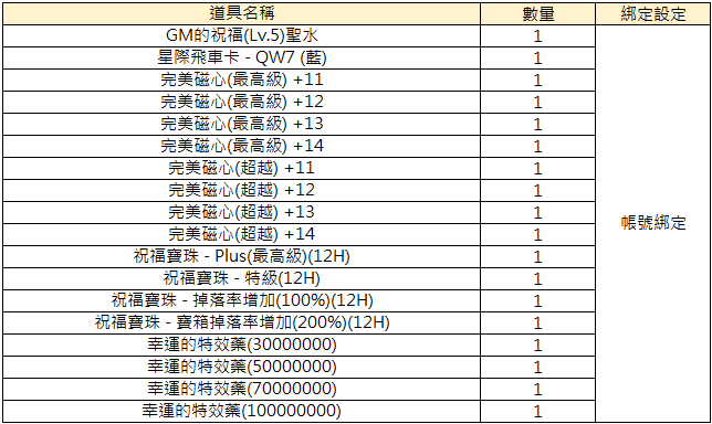 5. 本活動所贈送之道具均不得要求轉換、轉讓,或更換成其他遊戲道具、貨幣。