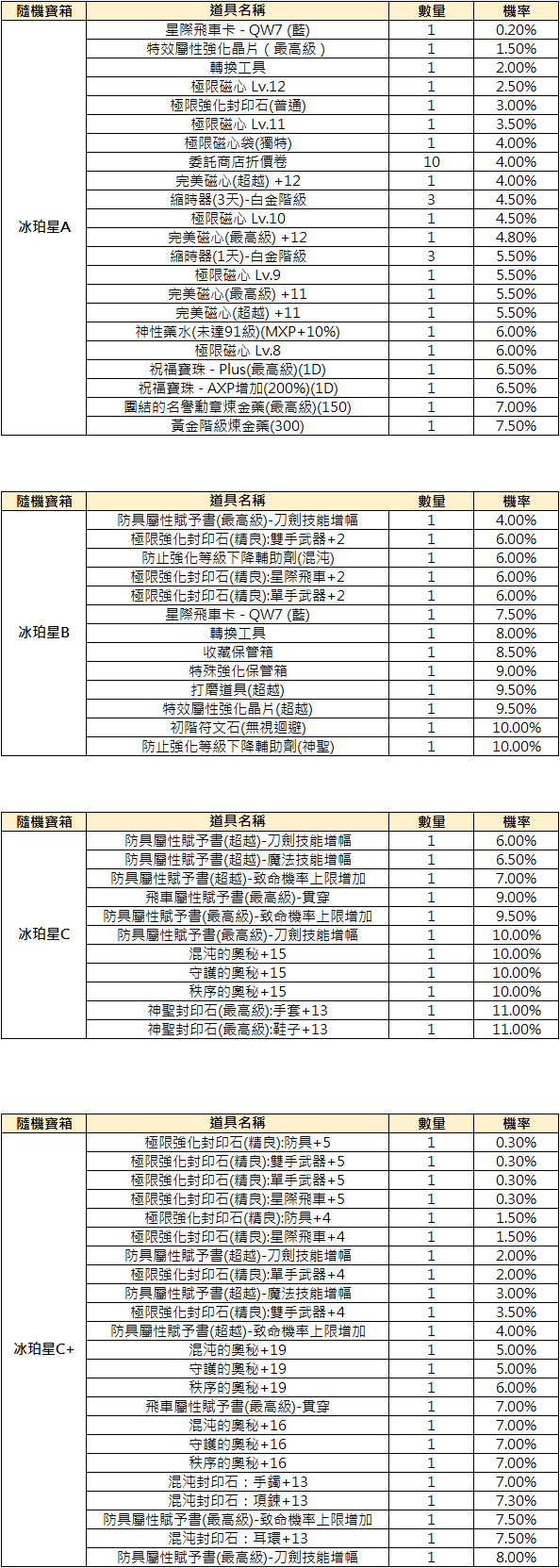 ※ 冰珀星與黑恆星的隨機寶箱出現機率皆相同。