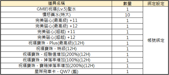5. 本活動所贈送之道具均不得要求轉換、轉讓,或更換成其他遊戲道具、貨幣。