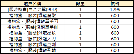 1. 本活動販售之部分商品有綁定、購買次數、等級、使用期限等限制,請留意公告內文及表格中說明。
