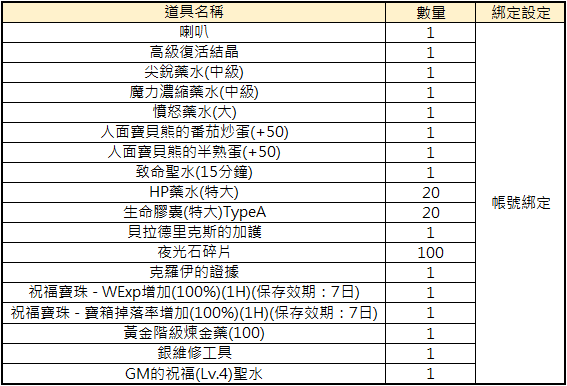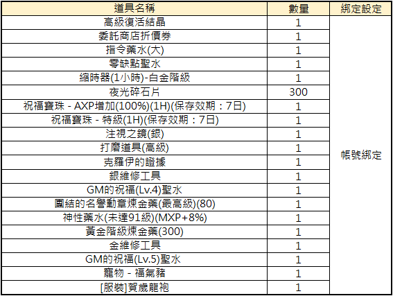 3. 獎勵獲取的道具可能有等級、綁定、時效等限制,實際道具設定以遊戲中獲取為準。