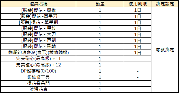 ■ 櫻花朵朵開 (開啟後有機會獲得以下其中一項道具)