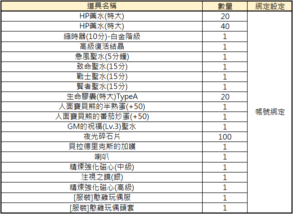1. 獎勵獲取的道具可能有等級、綁定、時效等限制,實際道具設定以遊戲中獲取為準。