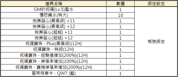 6. 獎勵獲取的道具可能有等級、綁定、時效等限制,實際道具設定以遊戲中獲取為準。