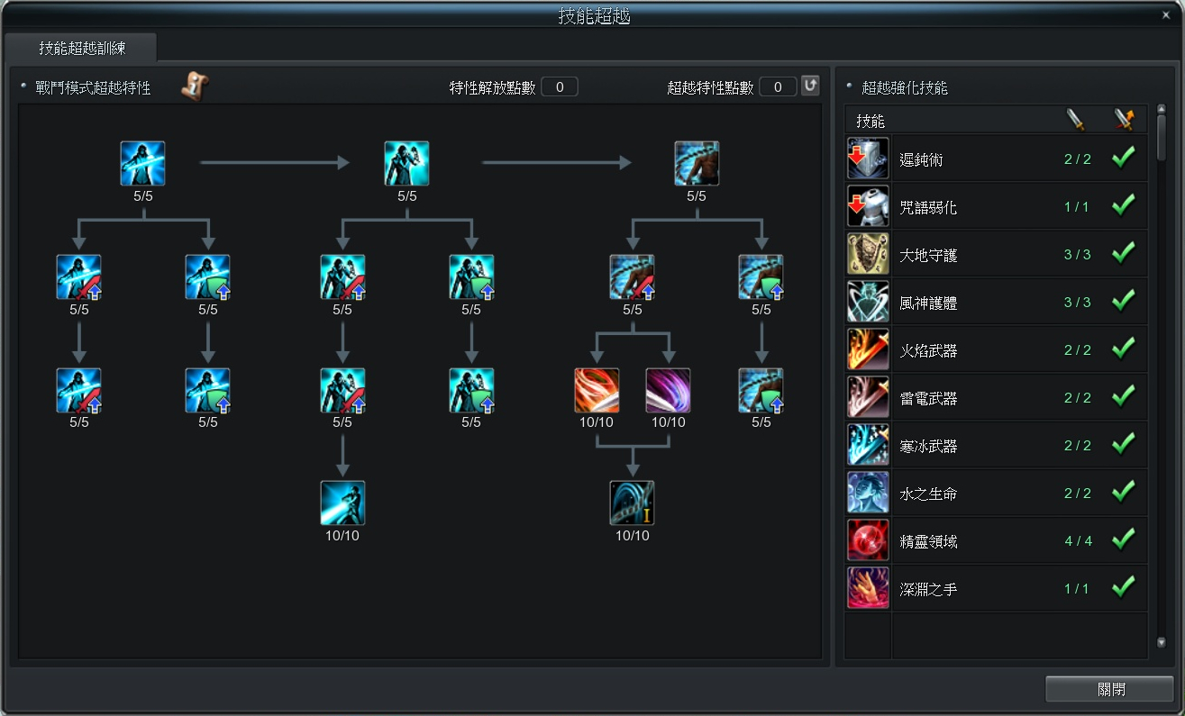 完成解鎖後點擊特性圖示即可使用「超越特性點數」進行學習及升級,使職業技能獲得超越特性而變得更加強大。