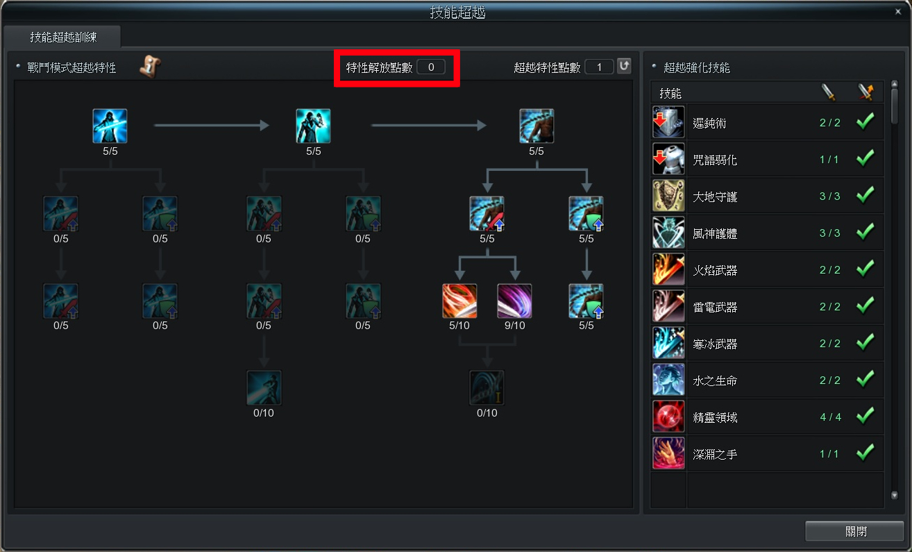 任務獎勵:解鎖「特性解放點數」,並顯示於技能超越UI上