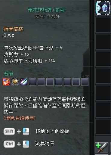 「寵物技能牌」可進行交易,點擊使用可將其所持有的能力值儲存至所選欄位中。