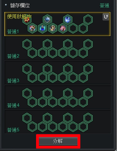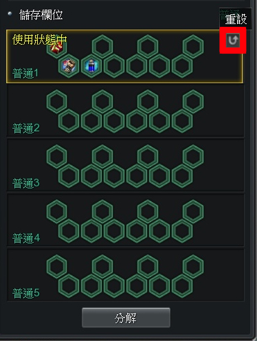 選擇儲存欄位後,點選「重設」按鈕,可消耗「初始工具」或力量晶石,重設整組欄位。