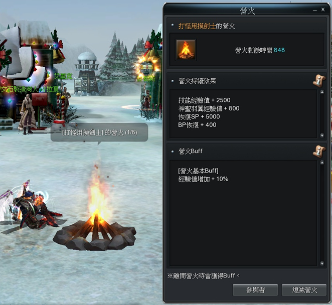 ※ 離開營火後該增益效果仍會持續,持續時間15分鐘。