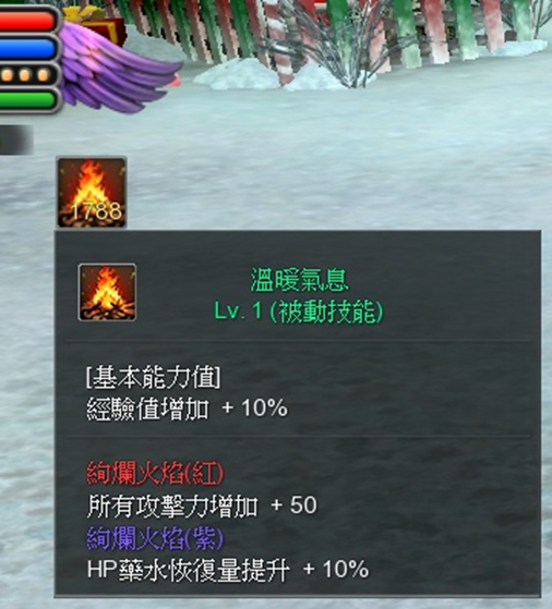 參加營火的玩家,在營火持續期間內會持續獲得以下效果: