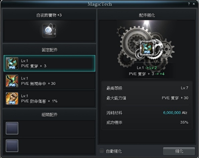 ※ 自動強化:會持續消耗持有的Alz進行強化,直到強化成功或點擊「停止」按鈕。