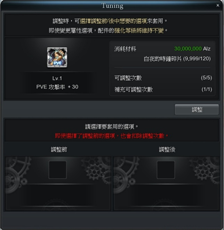 調整需消耗該類型的寶物碎片,碎片可透過分解「寶物」取得。