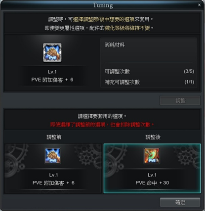 ● 調整:可以將「組裝配件」上已賦予的能力值變更為其他能力值。