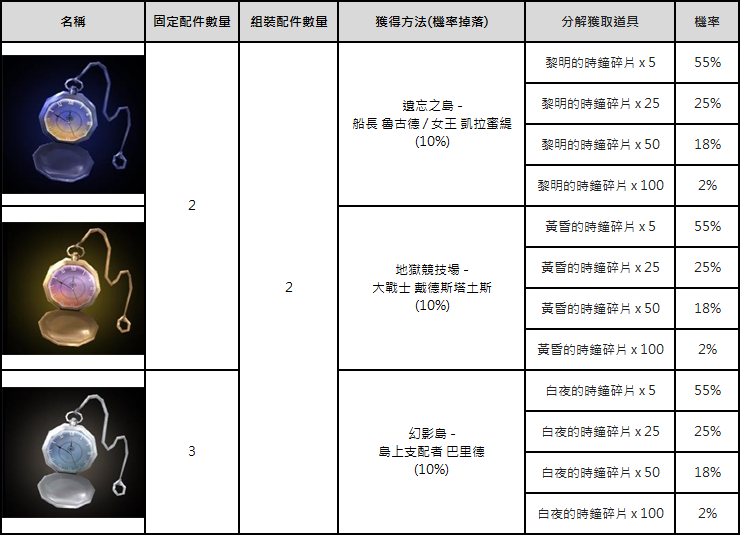 | 創造機會之人 | 透過分解獲得「黃昏的時鐘碎片」 | 20 | 成就點數 5 點 |